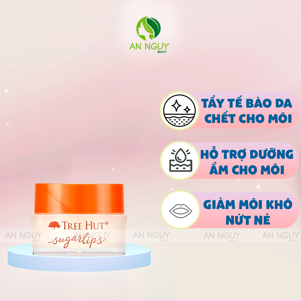 - Tẩy Tế Bào Chết Môi Tree Hut Sugarlips Lips Scrub là sự kết hợp giữa các hạt đường nhuyễn với bơ hạt mỡ và dầu bạc hà, giúp làm sạch lớp da chết trên môi mà vẫn nuôi dưỡng môi đủ ẩm, căng mọng cùng hương thơm the mát dễ chịu.