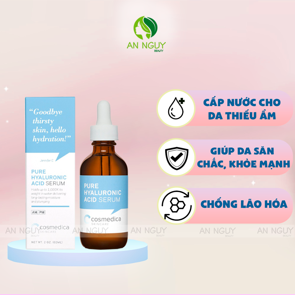 - Tinh Chất Cấp Nước Cosmedica Pure Hyaluronic Acid Serum với thành phần 100% Hyaluronic Acid tinh khiết - nguyên chất - hiệu quả cao, có tác dụng dưỡng ẩm da vượt trội mà không gây nhờn dính, lý tưởng dành cho mọi tình trạng da thiếu độ ẩm - thiếu nước.