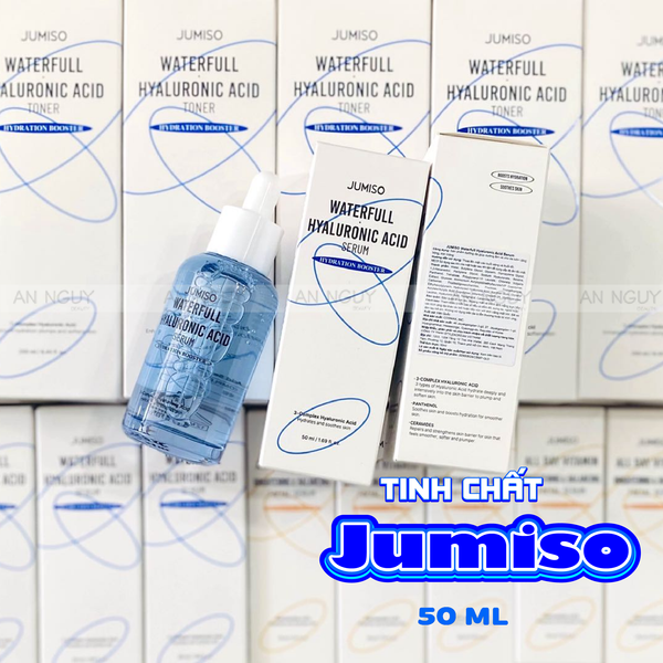- Tinh Chất Dưỡng Ẩm Căng Bóng Da Jumiso Waterfull Hyaluronic Acid Serum là tinh chất dưỡng ẩm kết hợp giữa 3 loại Hyaluronic acid, Panthenol, Ceramide vừa cấp nước, dưỡng ẩm sâu, củng cố và bảo vệ hàng rào da