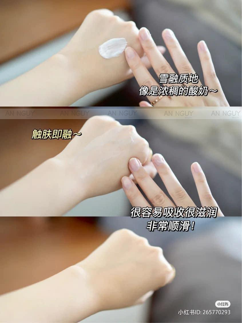 - Lấy một lượng kem vừa đủ thoa đều lên mặt, cổ và massage để dưỡng chất thấm đều trên da