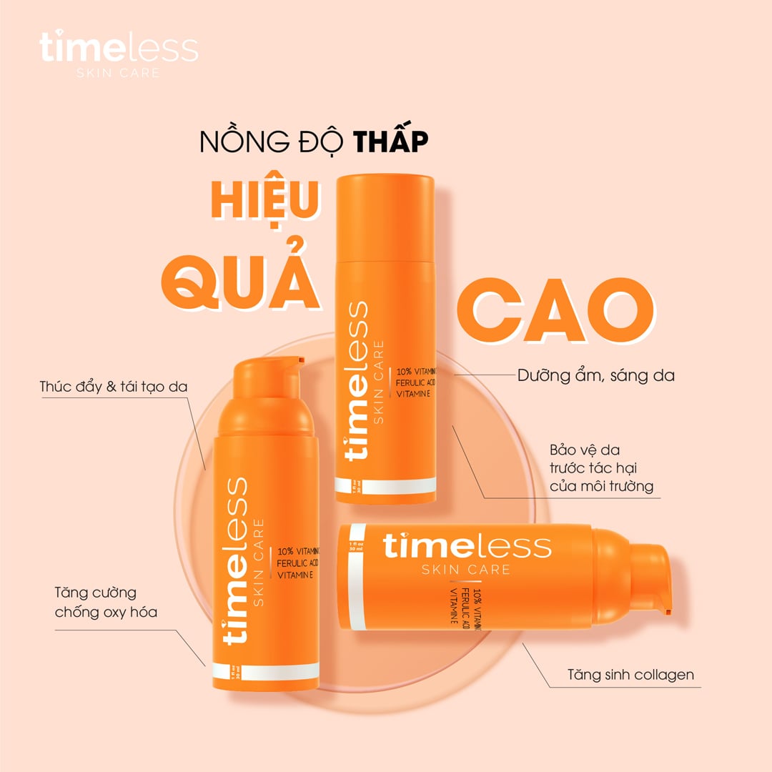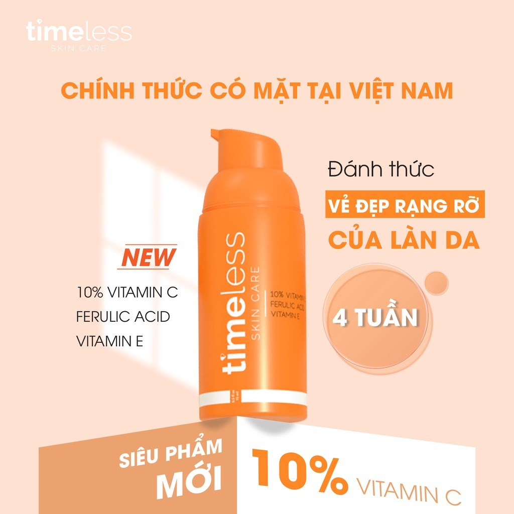 - Serum Timeless 10% Vitamin C Sáng Da, Mờ Vết Thâm là dòng tinh chất đến từ thương hiệu mỹ phẩm Timeless của Mỹ,