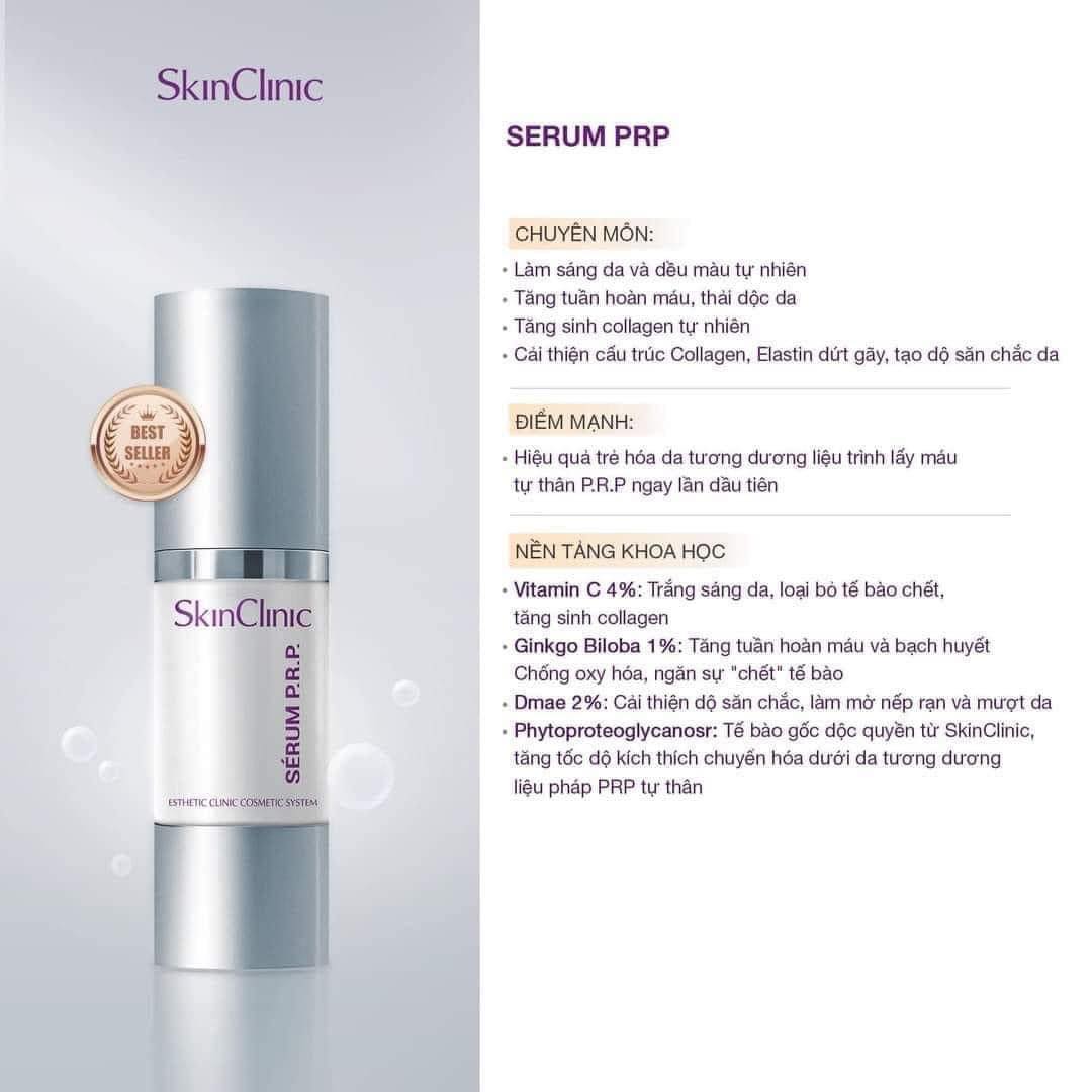 - Tinh chất SkinClinic P.R.P Tái Tạo Và Trẻ Hóa Tế Bào Gốc chứa đến 15% thành phần chiết xuất chủ yếu là Phytoproteoglycanos là tế bào gốc đăng ký bằng sáng chế độc quyền từ SkinClinic,