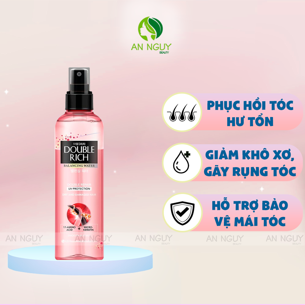 - Xịt Dưỡng Tóc Double Rich Balancing Water Double Repair UV Protection Cho Tóc Khô Xơ & Hư Tổn là dòng sản phẩm xịt dưỡng tóc với công thức mới cải tiến giúp nuôi dưỡng cho mái tóc khô xơ, hư tổn trở nên mềm mượt.