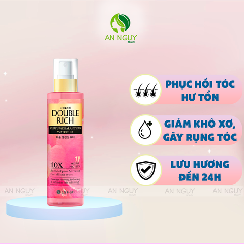 - Xịt Dưỡng Tóc Double Rich Perfume Blancing Water 10X Hương Nước Hoa là dòng dưỡng tóc thê hệ mới, thơm như nước hoa, dưỡng khỏe như serum giúp bảo vệ và tạo hương cho tóc lên tới 24h.