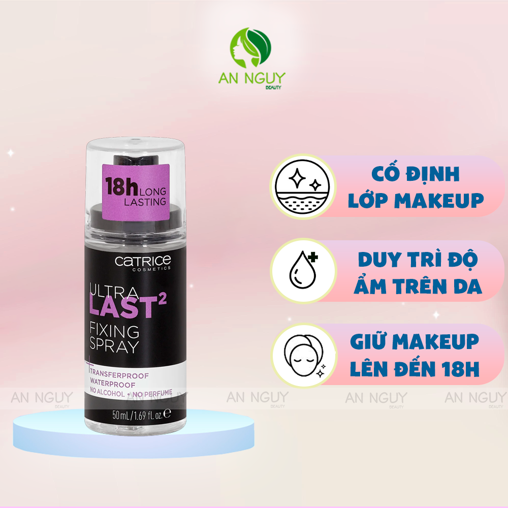 - Xịt Khóa Nền Catrice Ultra Last2 18H Long Lasting Fixing Spray với khả năng giữ lớp makeup trong suốt 18 giờ, cố định lớp nền, tăng cường độ tươi tắn cho làn da và duy trì lớp finish hoàn hảo đến tận cuối ngày.
