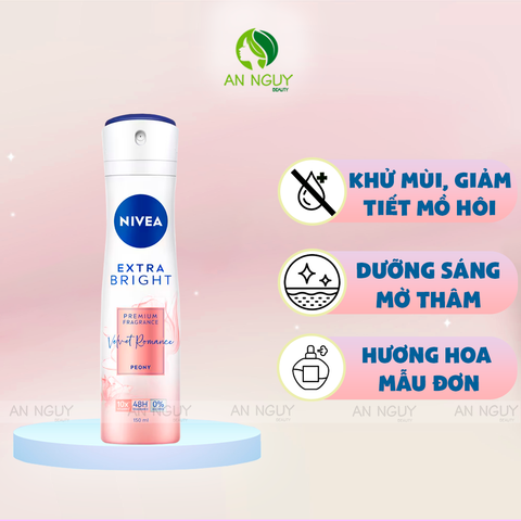 - Xịt Khử Mùi Nivea Extra Bright Premium Fragrance Ngăn Mùi, Lưu Hương Thơm Lâu là sản phẩm khử mùi dạng xịt chứa 10X Vitamin C cho vùng nách sáng và mịn màng, lưu hương thơm cao cấp đến 48H.
